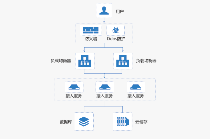 - 2、应用技术上采用内部组网多台设备明确分工,WEB前端负载均衡对网站流量进行分流,将请求导向到不同的数据中心的服务器群中,以便为客户提供更快的响应速度;